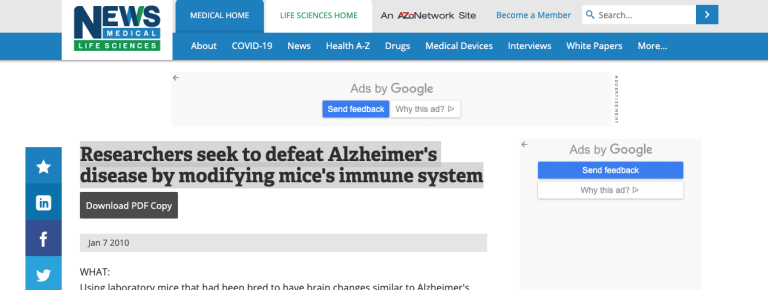 Researchers seek to defeat Alzheimer’s disease by modifying mice’s immune system