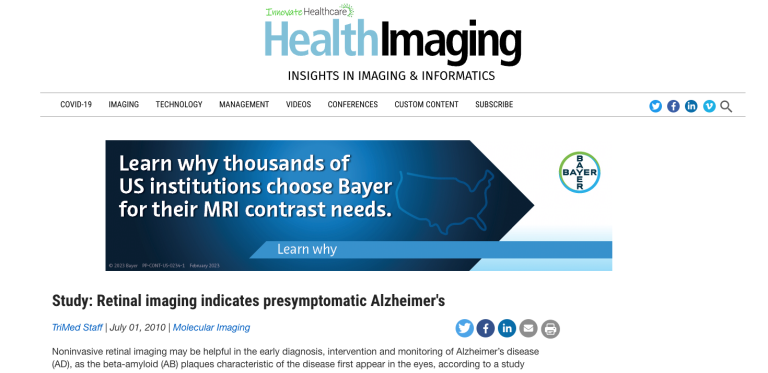Study: Retinal imaging indicates presymptomatic Alzheimer’s