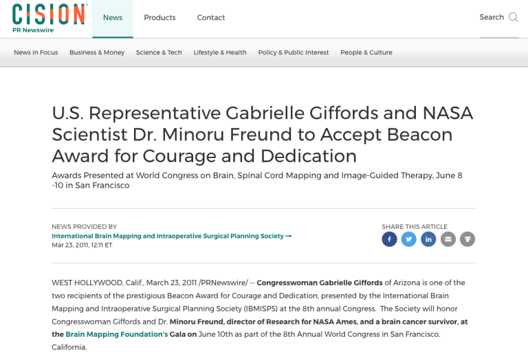 U.S. Representative Gabrielle Giffords and NASA Scientist Dr. Minoru Freund to Accept Beacon Award for Courage and Dedication