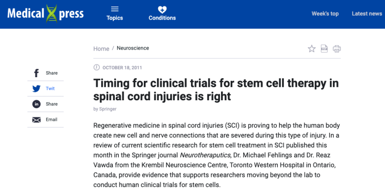 Timing for clinical trials for stem cell therapy in spinal cord injuries is right