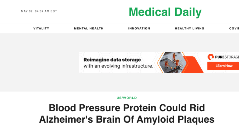 Blood Pressure Protein Could Rid Alzheimer’s Brain Of Amyloid Plaques