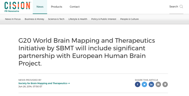 G20 World Brain Mapping and Therapeutics Initiative by SBMT will include significant partnership with European Human Brain Project.