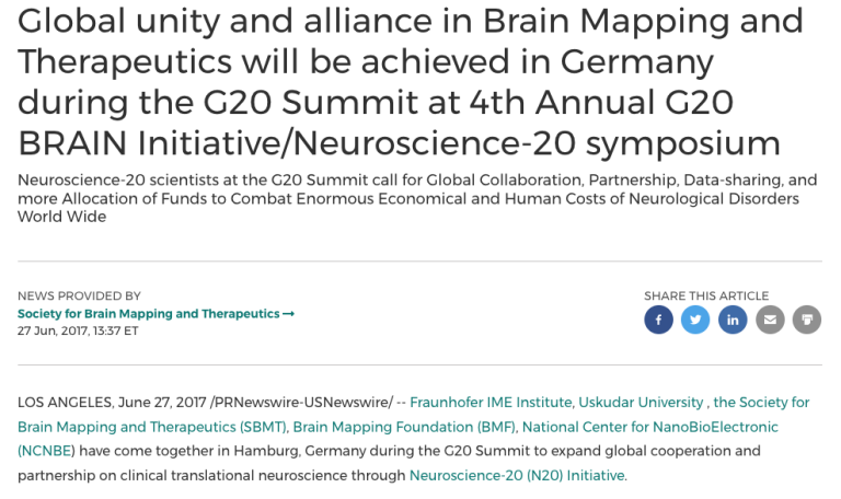 Global unity and alliance in Brain Mapping and Therapeutics will be achieved in Germany during the G20 Summit at 4th Annual G20 BRAIN Initiative/Neuroscience-20 symposium